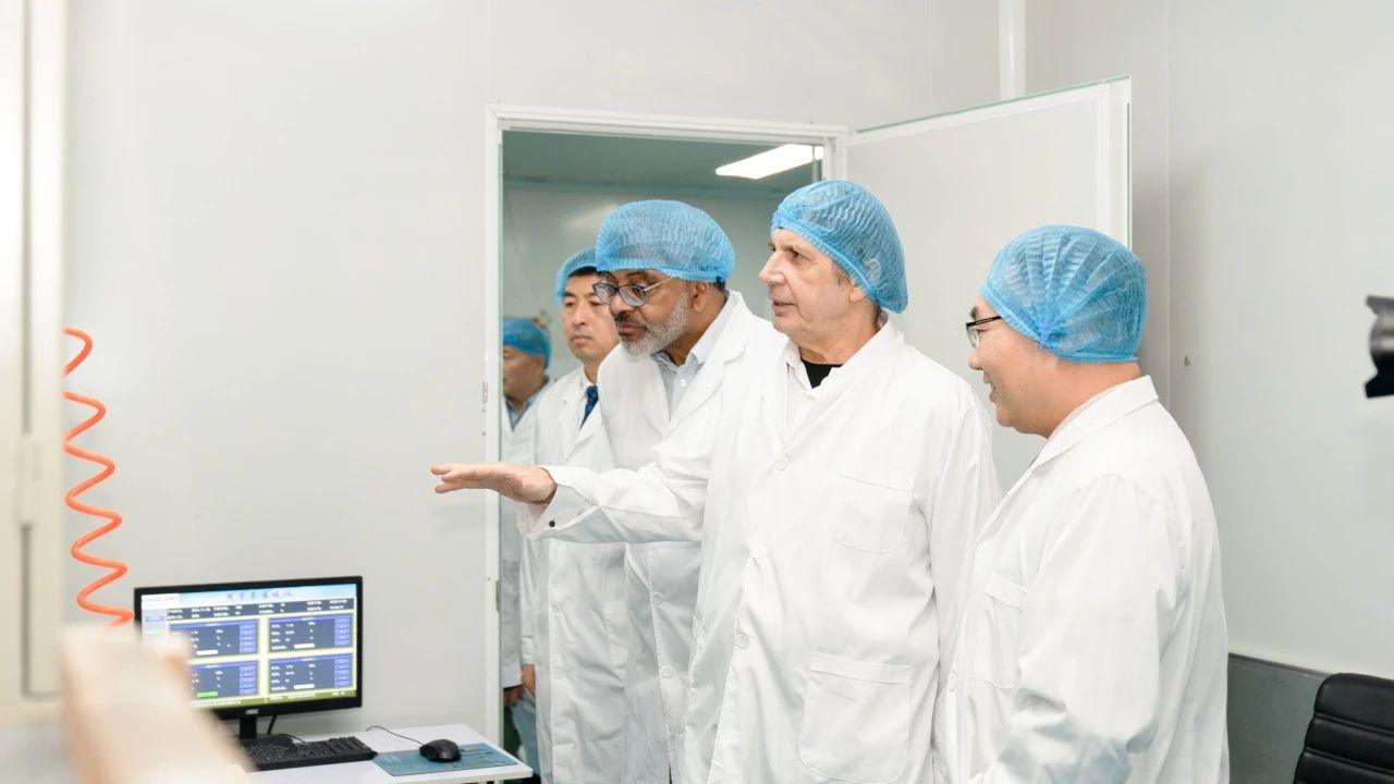 在乳膠產(chǎn)品生產(chǎn)車(chē)間,安德烈·蓋姆教授就石墨烯材料在安全套生產(chǎn)領(lǐng)域的應(yīng)用給予了寶貴的指導(dǎo)意見(jiàn)。