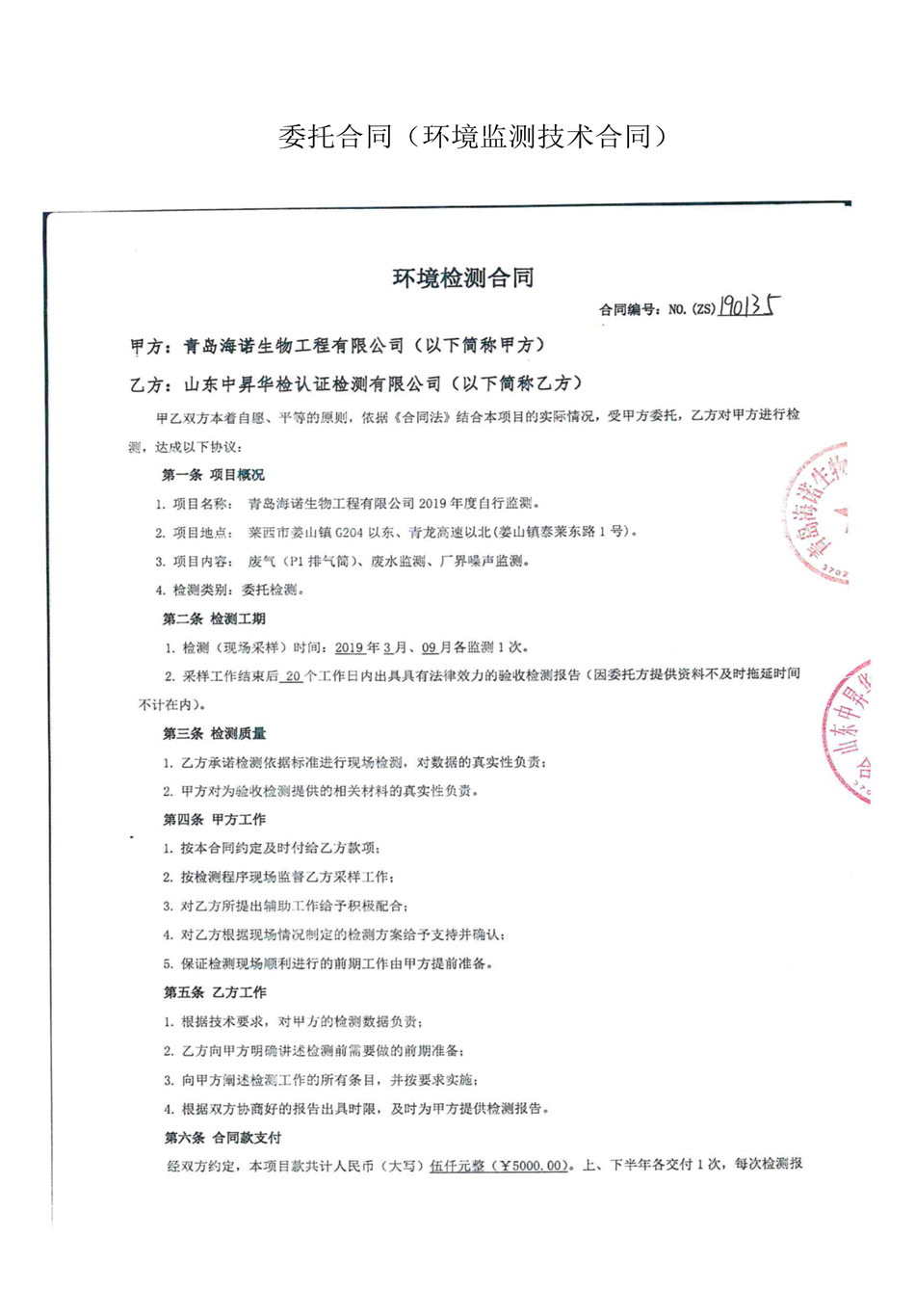 青島海諾生物工程有限公司自行監(jiān)測(cè)方案